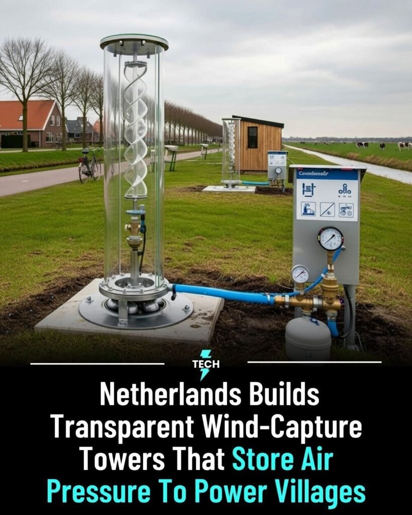 In the Netherlands, engineers have developed transparent wind-capture towers that rotate smoothly on ball bearings, storing air pressure to generate energy for small utilities in nearby villages. These towers harness wind power efficiently while maintaining a visually unobtrusive design, blending seamlessly with local landscapes and promoting sustainable energy use in rural communities.